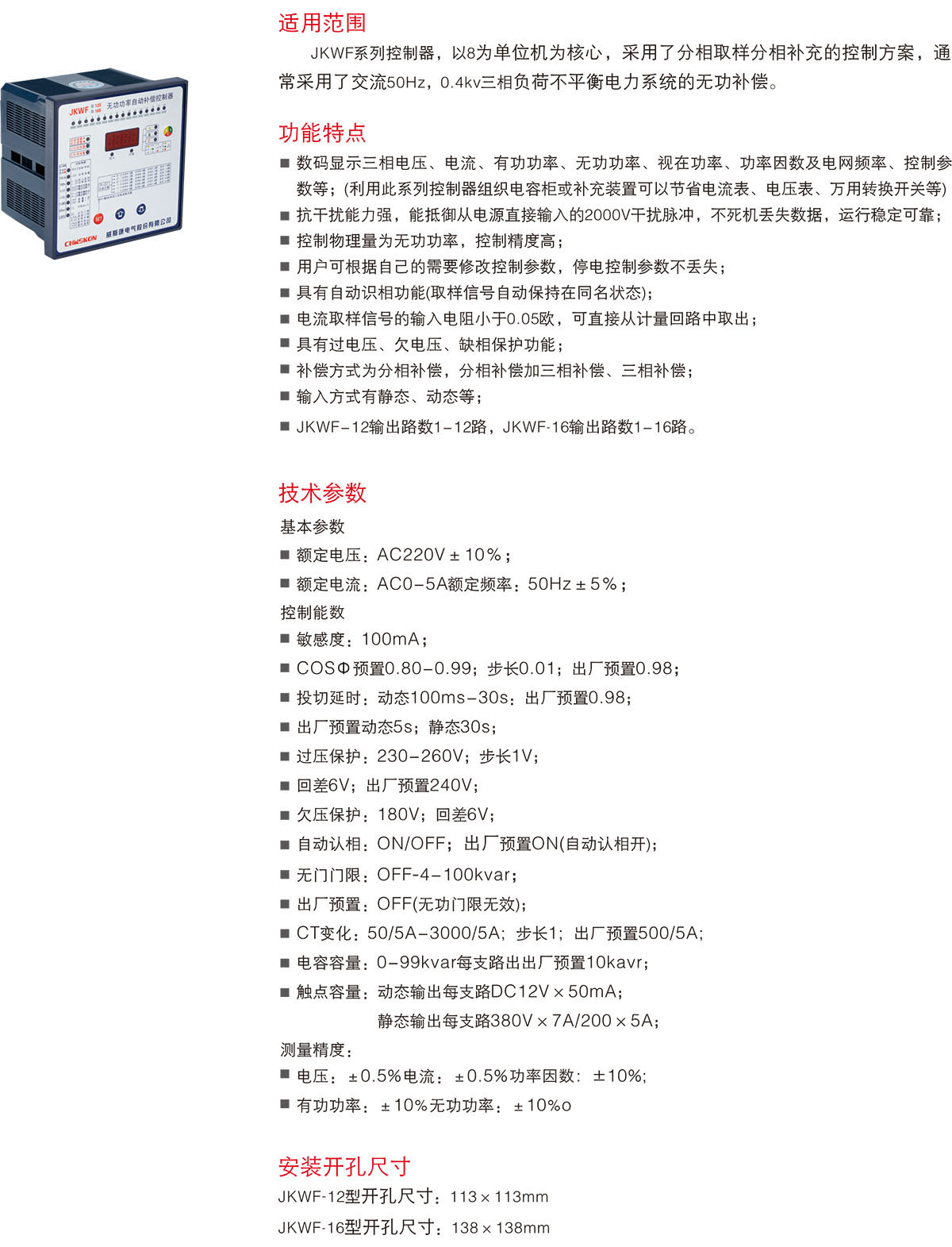 JKWF系列智能無(wú)功功率動(dòng)態(tài)補(bǔ)償控制器