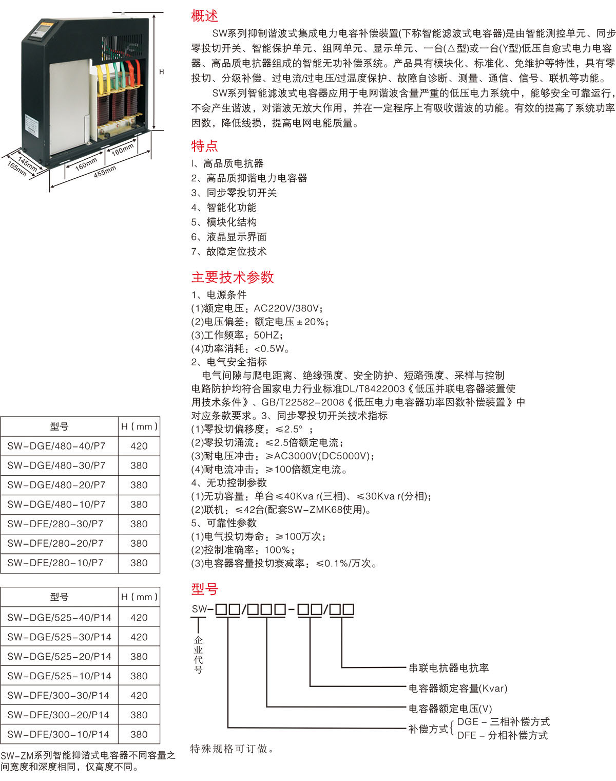 SW-DGE SW-DFE系列智能一體式抗諧波電容器